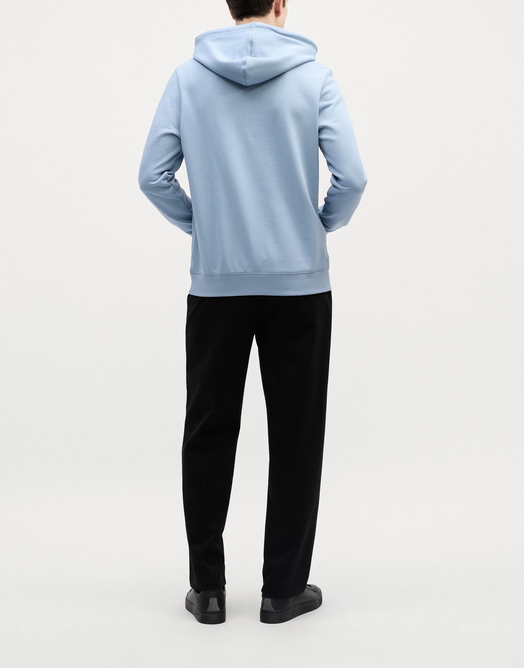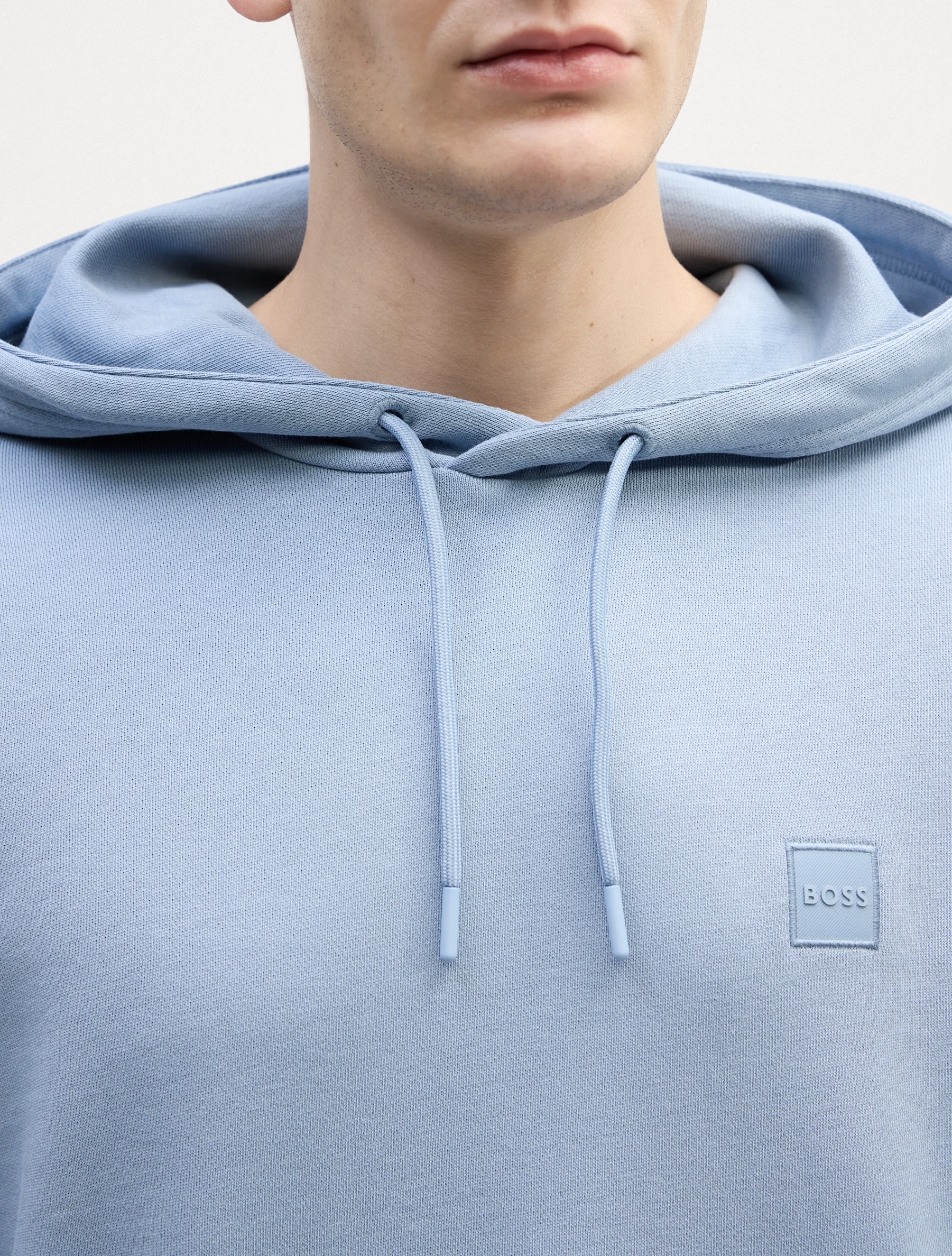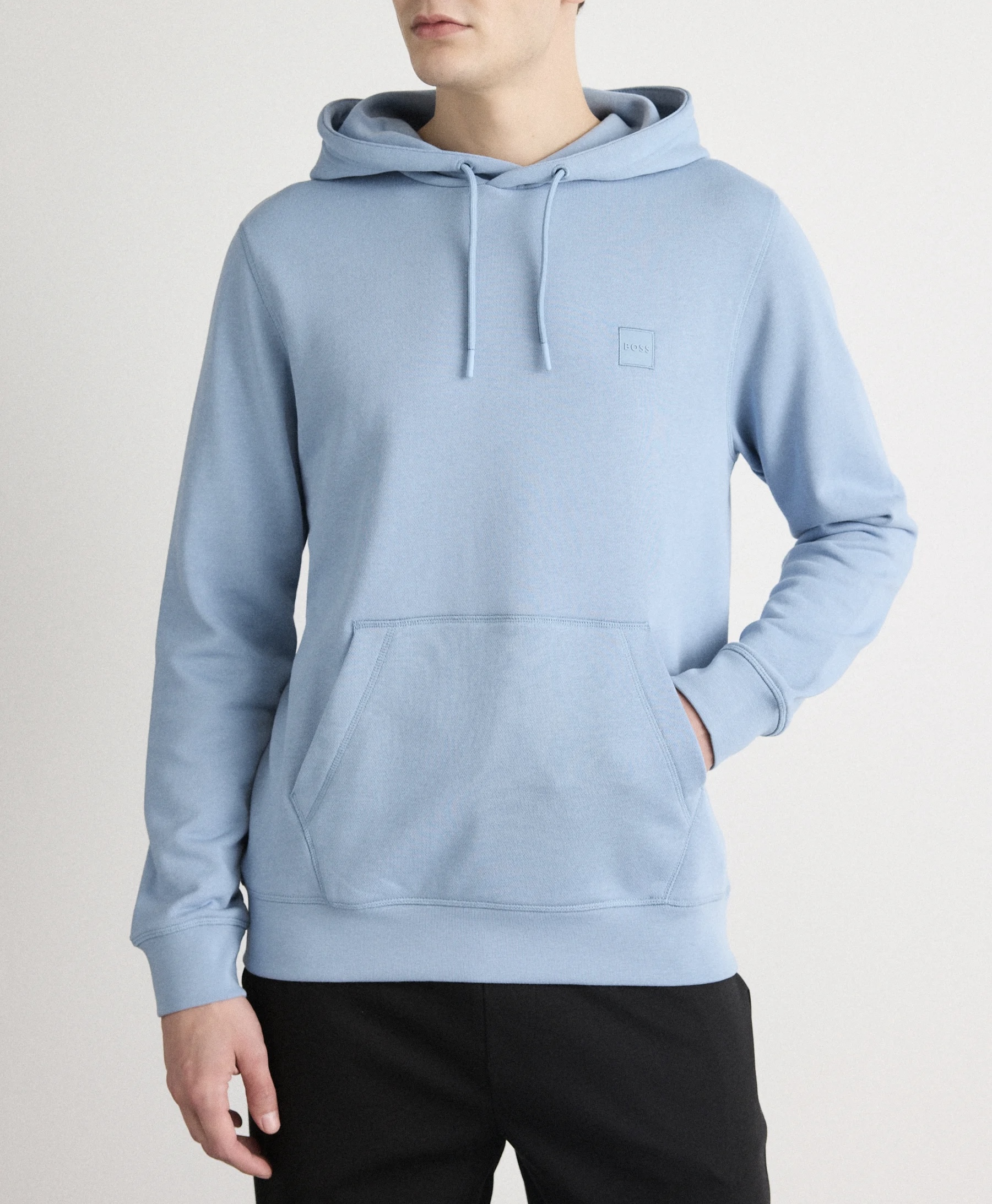 Hanorac original Hugo Boss, culoare albastru deschis , cu logo discret aplicat pe piept, oferind un loc minimalist, elegant și premium.