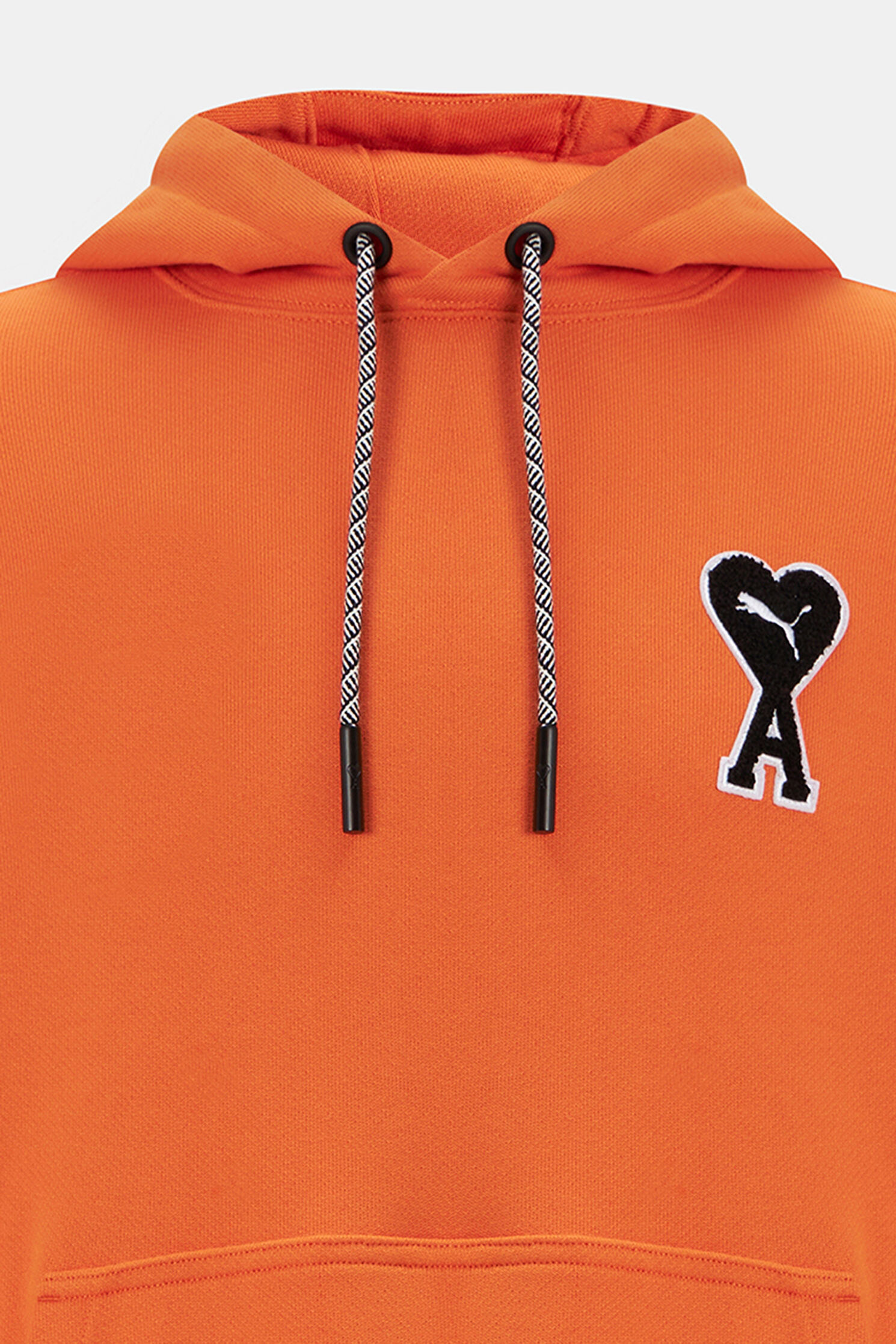 Hanoracul PUMA X AMI Face parte din colaborarea exclusivă dintre brandul sport Puma și casa de modă pariziană AMI,cunoscută pentru estetica sa minimalistă și elegantă. Această piesă îmbină funcționalitatea sportwear cu rafinamentul modei urbane moderne. Realizat din bumbac premium, hanoracul oferă confort optim și o purtare plăcută pe tot parcursul zilei .Designul este evidențiat de logo-ul iconic AMI de Coeur brodat pe piept, în contrast cu nuanța vibrantă de portocaliu. Glugă reglabilă, buzunarul frontal și finisajele elastice completează un look versatil, ușor de integrat în ținute casual. O alegere ideală pentru cei care apreciază colaborările de top.